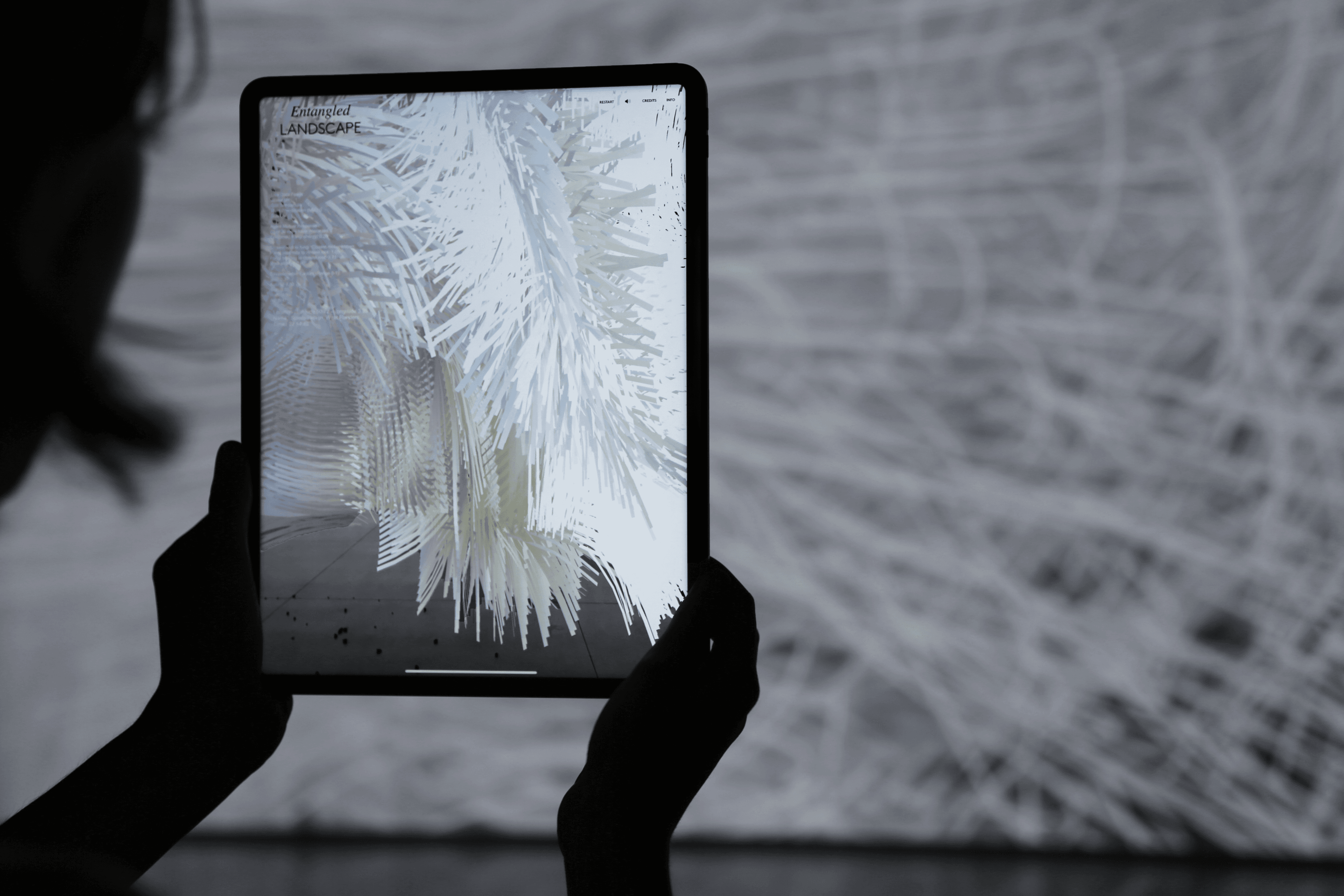 Entangled Landscape is a meditative mixed reality experience that manifests the invisible collaborative life within soil as a digital sculpture. Focused on unveiling the networks and resource exchanges at a microscopic level, the artwork explores mutualistic and collaborative behaviour across various industries, nature, and cultures. The installation is an audiovisual representation featuring two neural networks trained on mutualistic interactions, inspired by the system of mycorrhizae, responding to live environmental data from South West Flanders, Belgium. This interplay either enables or disables their collaboration.