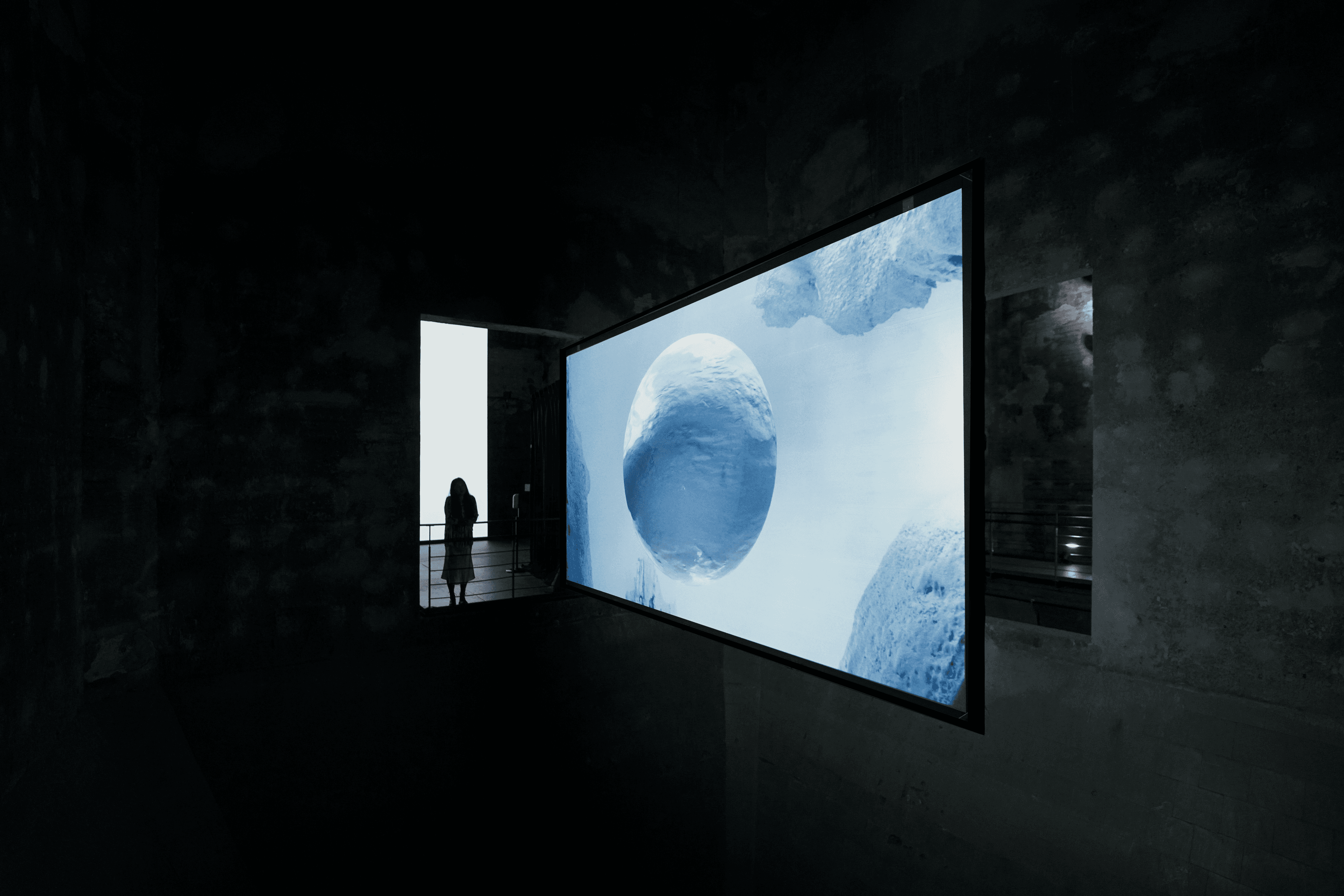 Explorations of digital material ecology is a large-scale projection artwork showcasing a real-time virtual sculpture responsive to water surface data collected from a nearby river. The data is acquired through a physical sculpture equipped with sensors that measure subtle and poetic movements, often imperceptible to the naked eye.